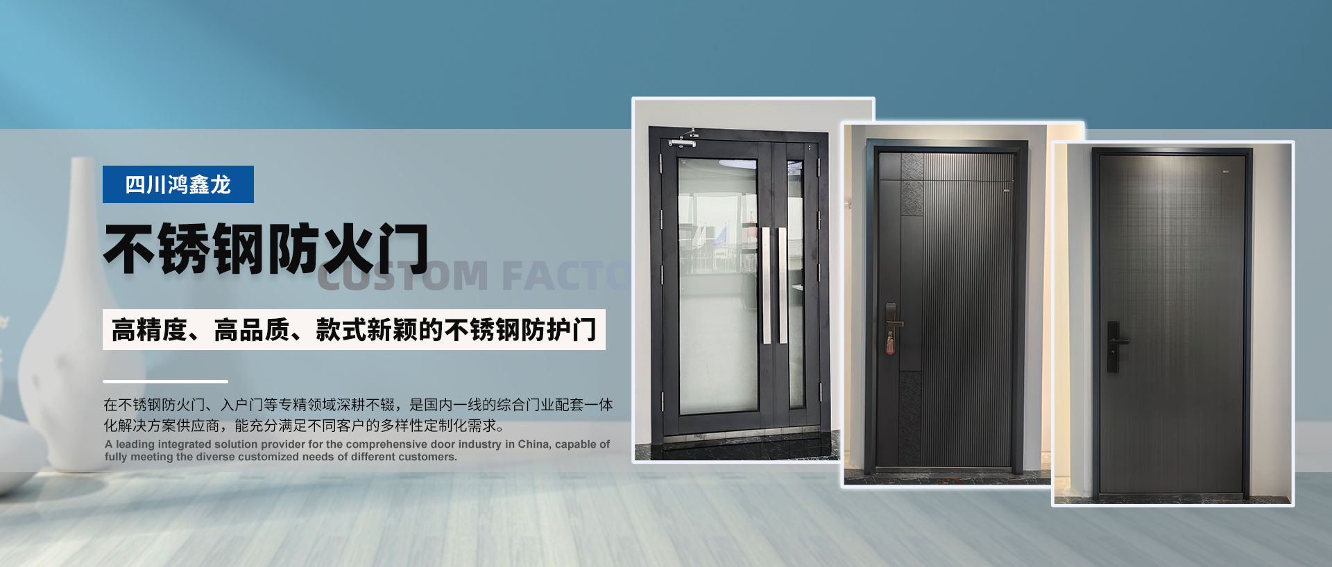 四川鴻鑫龍科技有限公司是一家集不銹鋼門設計、生產、銷售、安裝于一體的企業。于2013年注冊《鴻鑫龍》品牌,2020年注冊《偉門》品牌,以輕奢入戶門進軍高端門市場。 公司是國內較早專注于不銹鋼門的企業之一,在不銹鋼防火門、入戶門等專精領域深耕不輟,是國內一線的綜合門業配套一體化解決方案供應商,能充分滿足不同客戶的多樣性定制化需求。 2023年,公司搬遷至羅江經濟開發區金山工業園區,此地緊鄰108國道和成綿高速,交通便利,物流發達。 ...